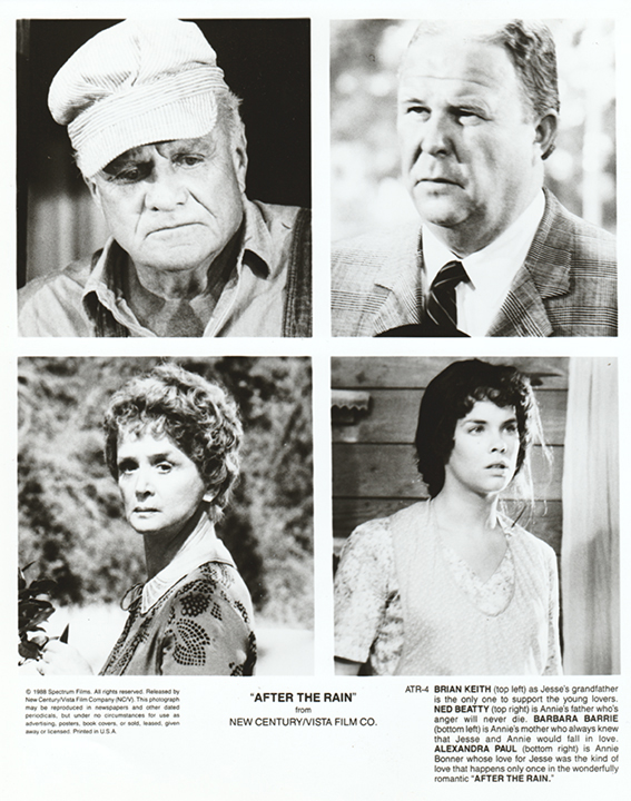 Ned Beatty’s filmography yielded nothing recognizable although I’m not sure what I was expecting because I didn’t know the name of the movie to begin with. Searches yielded only inquiries of others like me trying to find the film until one source reported a 1988 Tyler, Texas, premier titled, “After the Rain.” For reasons unknown however, it apparently was never released in U.S. theaters, although a 1990 VHS version was supposedly found in Japan titled, “The Passage.” The only tangible evidence of either title found online was press release photos for, “After the Rain.”